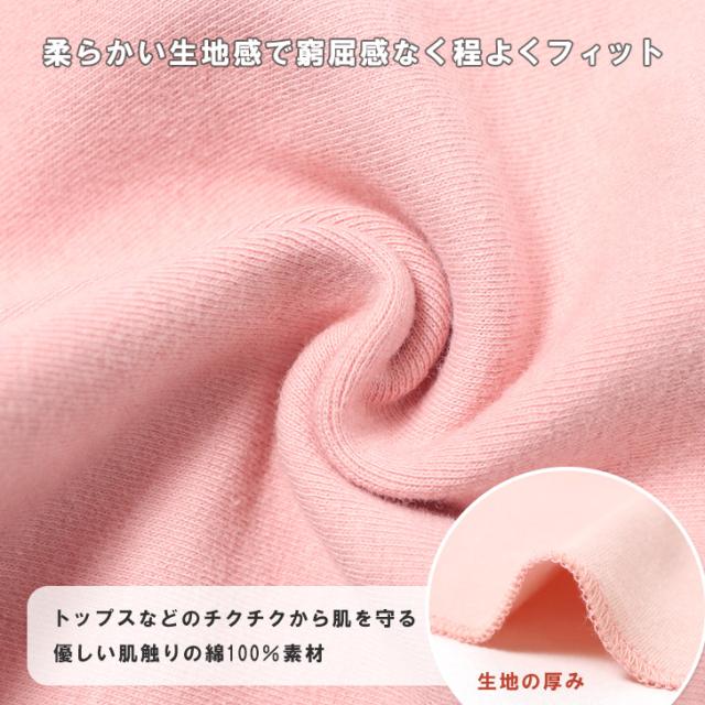 トップスなどのチクチクから肌を守る、優しい肌触りの綿100%素材