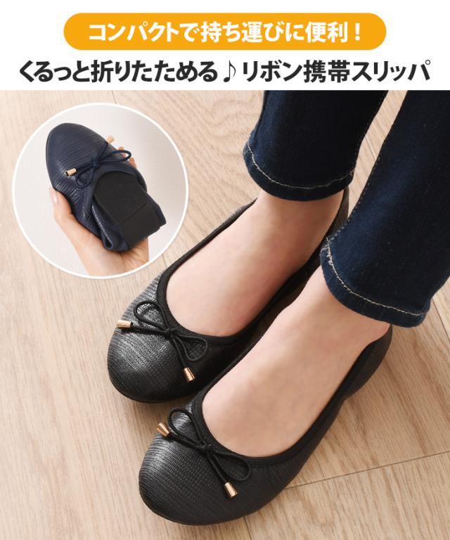 ●くるっと折りたためる♪大人可愛いリボン携帯スリッパ