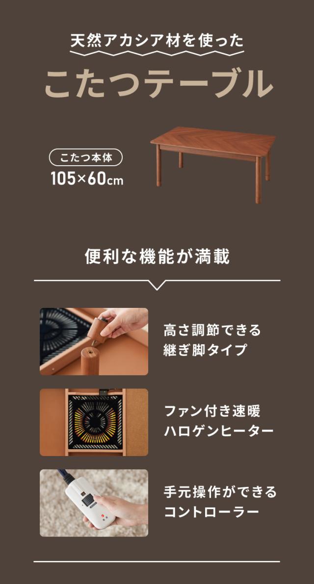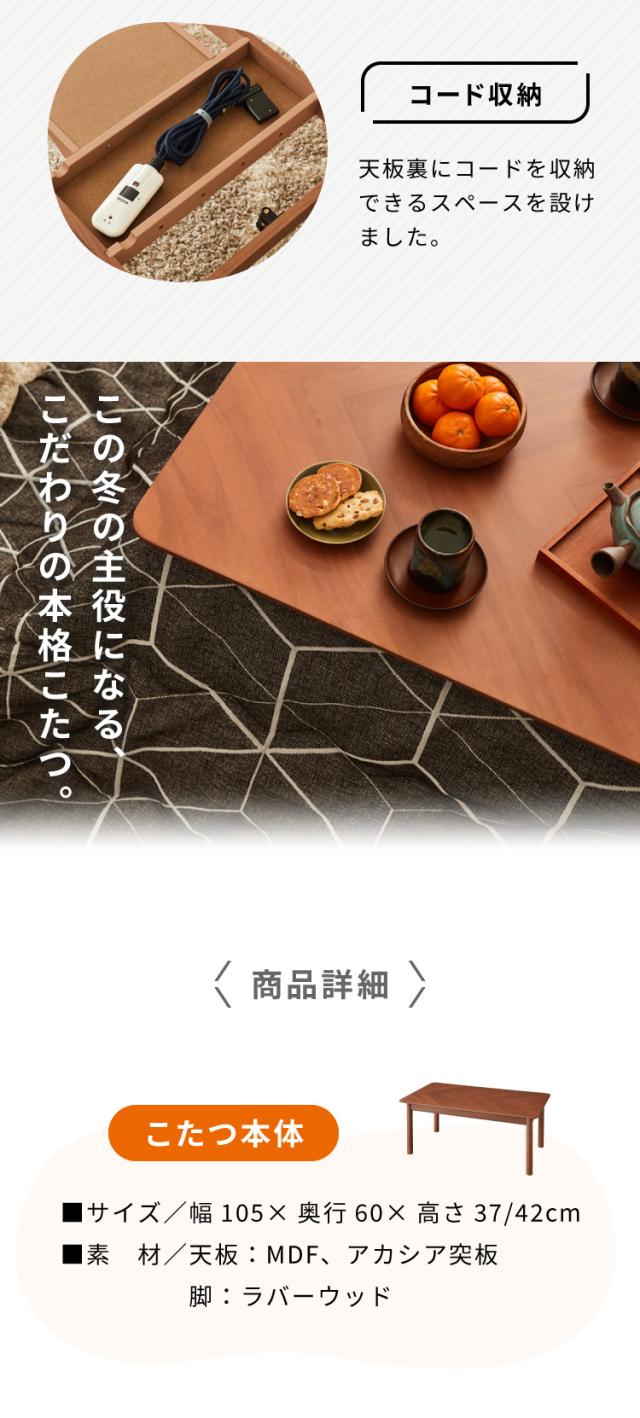 こたつテーブル 長方形 幅105cm 季節家電 高さ調節可能 節電 省エネ コタツ 炬燵 冬 コンパクト こたつテーブル ローテーブル インテリア 食卓 座卓 北欧 インテリア リビング ダイニング(代引不可)【送料無料】