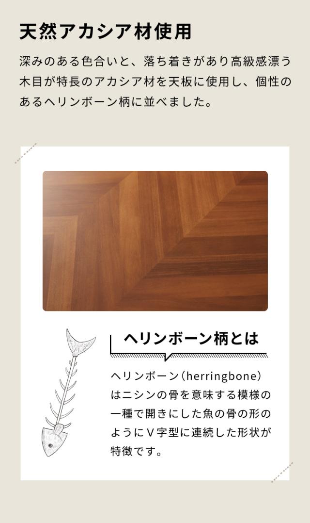 天板はアカシア材をヘリンボーン柄に並べた突板を使用しています。