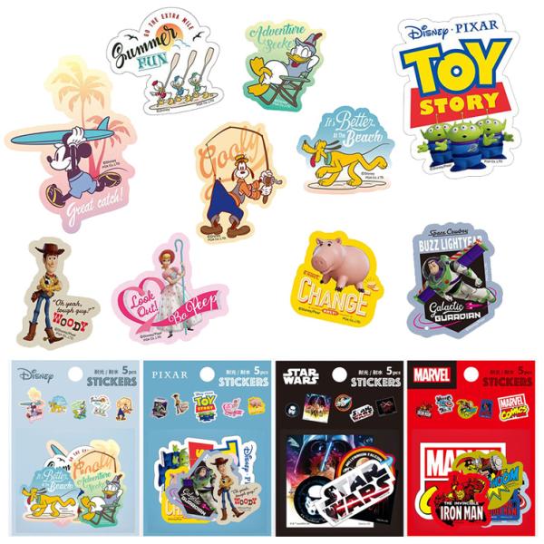 ディズニー ステッカー シール キャラクター グッズ 5デザイン 各1枚 ミッキー トイストーリー スターウォーズ マーベル PVC 耐水 耐光