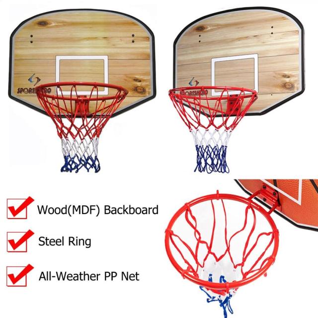 【耐久性のあるウッドバックボード】ウッド(MDF)バックボード、頑丈なスチールリング、全天候型ppネットで作られたこのフープは、バスケットボールの多くのシーズンに耐えられるように設計されています。