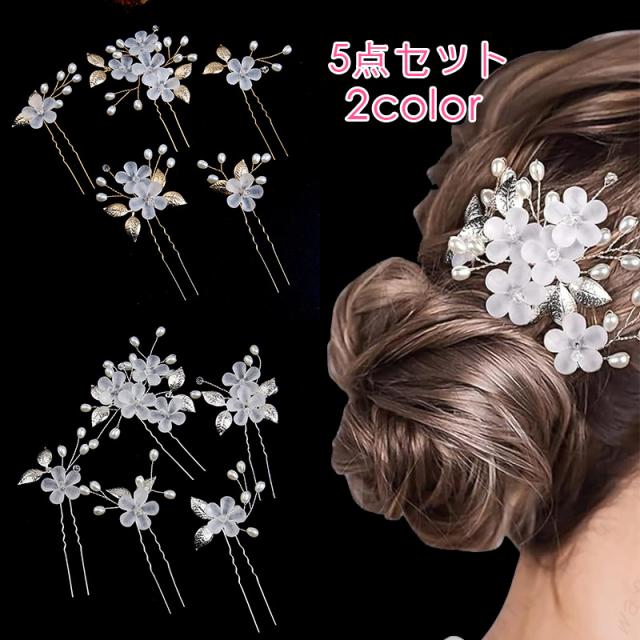 髪飾り 5点セット (h88#) 当日発送 2color ヘアピン 髪留め 成人式 Uピン 花 和装 振袖 ヘアアクセサリー 卒業式 結婚式 U字 かんざし 簪 可愛い ヘッドドレス