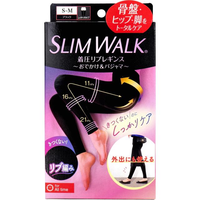 スリムウォーク 着圧リブレギンス S-M 美脚 骨盤 ヒップ 足