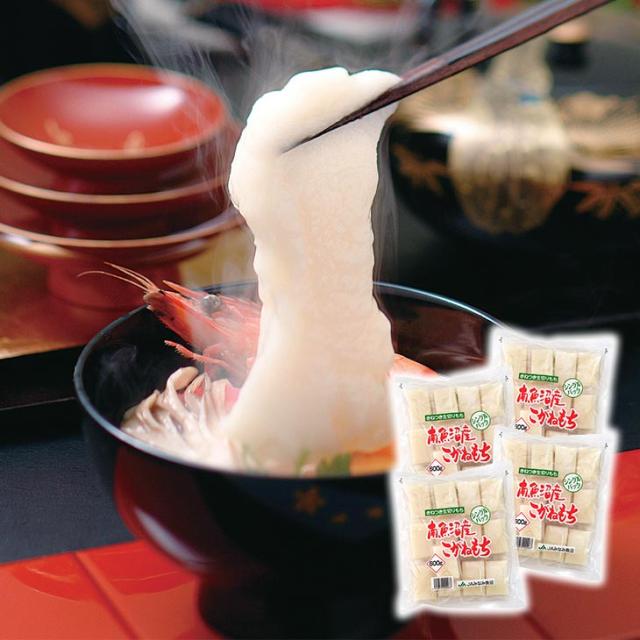 生産量の少ない「南魚沼産こがねもち」の新米(もち米)を使用し、昔ながらの杵つき工法でつき上げた大変希少な生切りもちです。こだわり製法で仕上げたお餅は「粘り・コシ」が強く煮ても溶けにくいので雑煮や鍋物などに最適です。包装は保存に強く便利な個包装です。