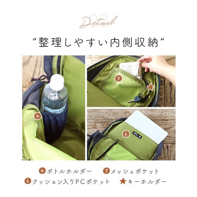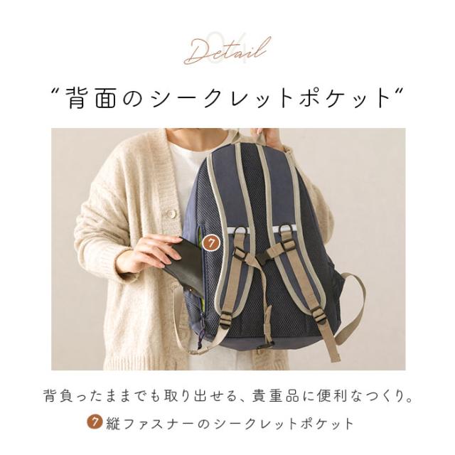 | 商品説明 | ・北欧ブランド「moz(モズ)」から、デイリー使いにぴったりな「バックパック」が新登場。 【見た以上の収納力】 ・軽量でコンパクトなサイズ感ながら、容量は約17L。しっかり入るのに持ち歩きやすく、満員電車などの人混みでも邪魔になりにくいのがポイント。 【ガバっと開くダブルファスナー開口】 ・開口部は左右どちらからも開閉できる、ダブルファスナー式。大きく開いて中身が見やすく、出し入れがスムーズ◎ 【A4サイズもノートPCも】 ・内側はA4サイズのファイルが縦向きにすっぽり。ノートPCを収納できるクッションポケットも装備し、通学用にもおすすめ。 【伸縮性のあるmozポケット】 ・収納物の大きさにフィットする、伸縮性のあるmozポケットを装備。500mlペットボトルが縦向きに収まり、倒れることなく持ち運びOK!何も入れていない状態ではフラット形状。 【小物が迷子になりにくい!】 ・クッションポケットとmozポケットの他にも、内側と外側に合計5つのポケットとキーフックを配置。背面にはシークレットポケットもあり、移動の多いシーンに最適。 【背負い心地快適】 ・背面とショルダーベルトには、クッション性のあるメッシュ素材を使用。ムレにくく快適な背負い心地◎チェストベルトでズレ落ちを防止。 【ちょっとの雨なら大丈夫】 ・表面に水滴や汚れを弾く撥水加工済みで、お手入れも拭き取るだけ。(※完全防水ではありません。) 【選べるカラー】 ・年代問わず使いやすい落ち着きのあるカラーに、フロントの牛革ワッペンや引き手がアクセント。ショルダー部分のDカンにお手持ちのチャームを付けて、アレンジも。 【mozポケットとは】 ・ブランドキャラクター「エルク」のもつ柔らかなイメージに合わせて、内部に伸縮する生地を採用したポケット。 【ポケット仕様】 ・内側:mozポケット(ボトルホルダー)×1、クッションポケット×1、ファスナー式メッシュポケット×1 ・前面:ファスナーポケット×1 ・サイド:メッシュポケット×2 ・背面:シークレットポケット×1 |