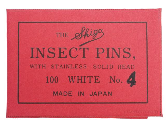 昆虫針の定番、志賀の【有頭】インセクトピン<br>高級ステンレス製100本入り<br>長さ:約40mm<br>太さ:約0.55mm<br>※プラモデルのリベットやホイールワイヤーにも。<br>◆商品名:insectech 有頭 志賀 昆虫針 (4号)<br>商品の説明<br>有頭針か無頭針か迷った場合は有頭がオススメ。標本箱を間違って逆さまにしてもペフにしっかり刺さっていれば針から標本が抜けにくい。標本作製時にも有頭針の方が扱い易く、無頭針に比べ安全などのメリットがあります。 <br>必ずお読みください<br>【昆虫針のみ】のご注文はクリックポストでの、ポスト投函となります。【取り扱い商品で昆虫針以外の商品】のご注文を頂いた場合は送料を調整し同梱致します。