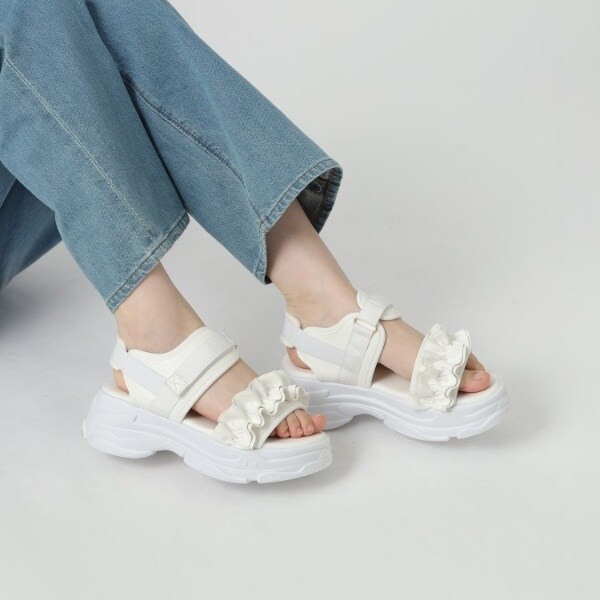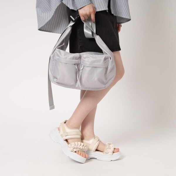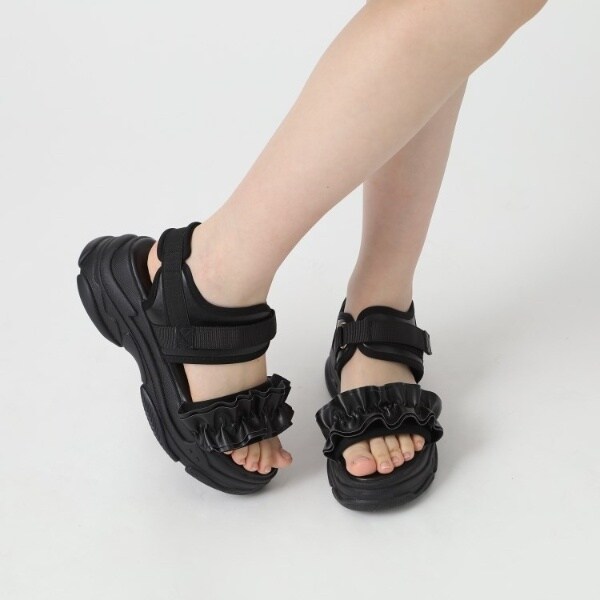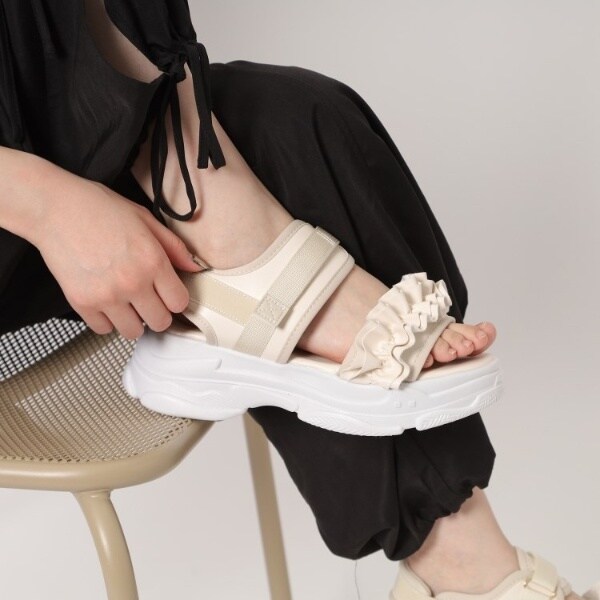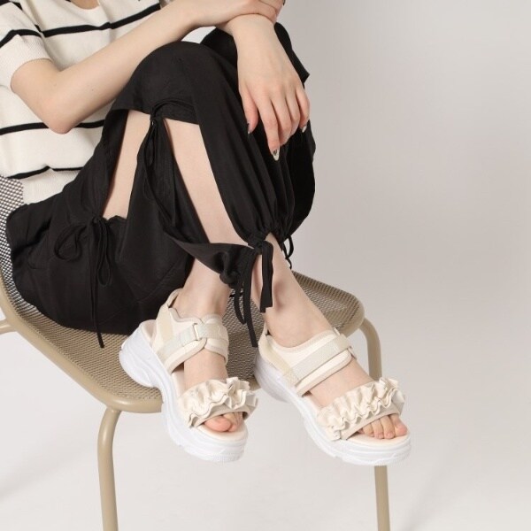 使いやすいスポサン底にカワイイフリルのデザインが付いた合わせやすいサンダルです。