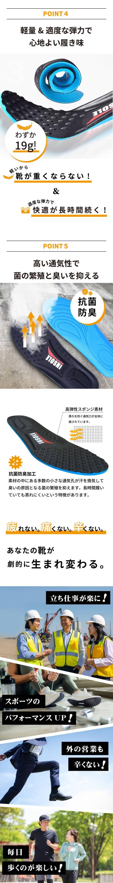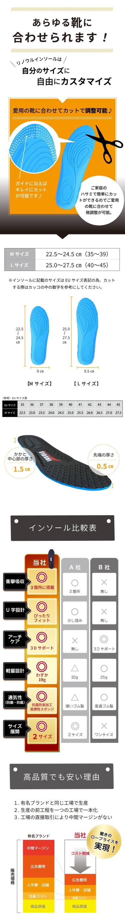 - 今まで履いていた靴のインソールが駄目になったため、このインソールを購入しました。 立ち仕事で歩き回るのですが本当に疲れにくく、歩きやすい。また購入したいです。