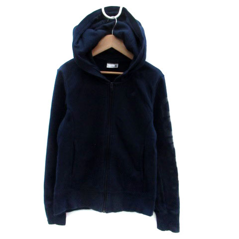【中古】アディダス adidas ジャケット パーカー ミドル丈 ジップアップ プリント L 紺 ネイビー /HO9 レディース