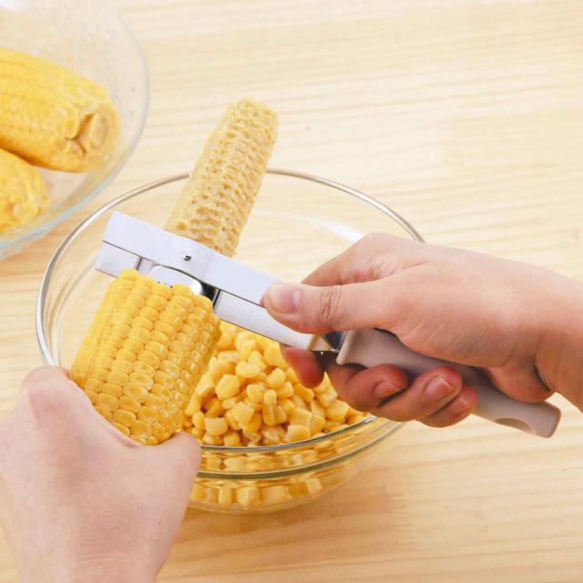 カッターのギザギザした刃で、とうもろこしの実の部分だけをきれいにバラせます。生のままでも茹でた後のとうもろこしにも対応しています。