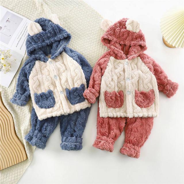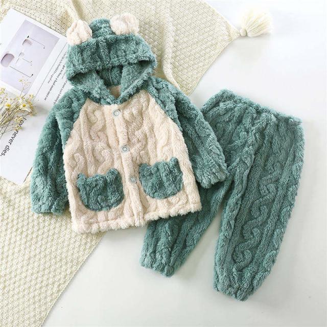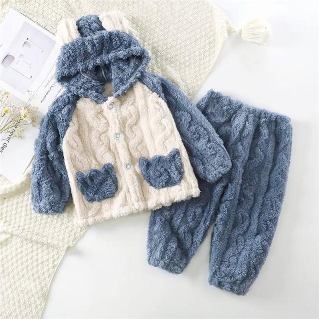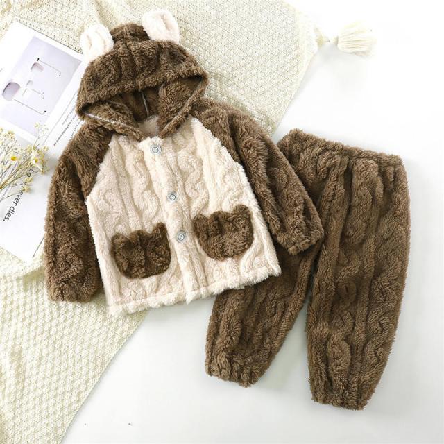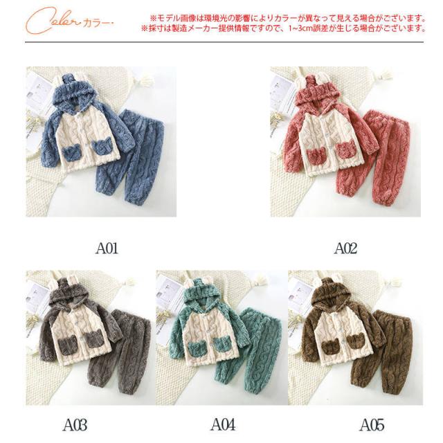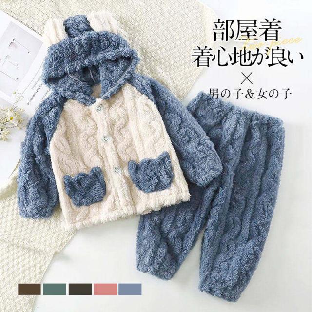 【水曜日まで!10%クーポン配布中】 パジャマ キッズ モコモコ ルームウェア 冬 子ども 部屋着 前開き 寝巻き 可愛い 防寒 暖かい もこもこ セットアップ あった