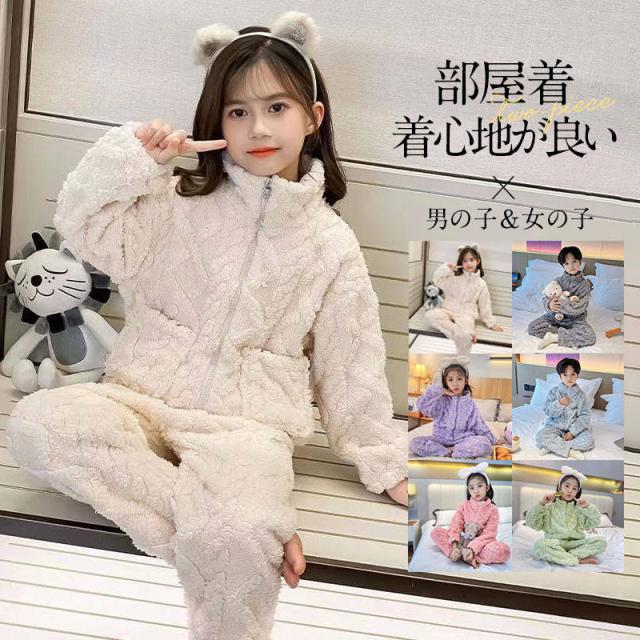 【水曜日まで!10%クーポン配布中】 パジャマ キッズ ルームウェア 冬 モコモコ 部屋着 前開き 寝巻き 子供 厚手 ふわもこ もこもこ 上下 セットアップ あったか