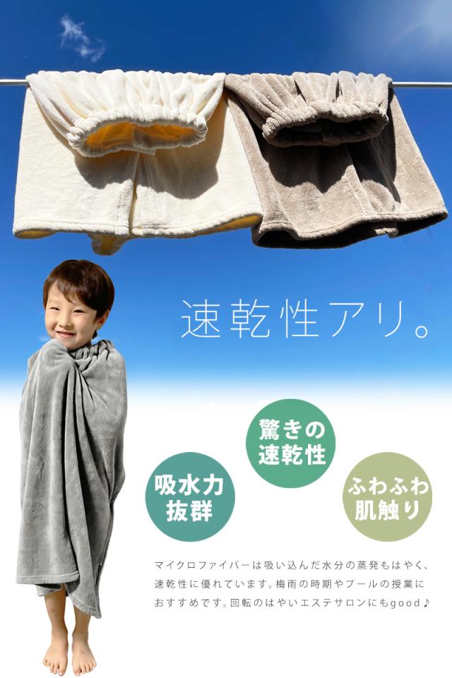 ラップタオル 子供用 プール 巻きタオル マイクロファイバー 60cm 女の子 男の子 スイミング 無地 シンプル お風呂 吸水タオル バスタオル 海水浴