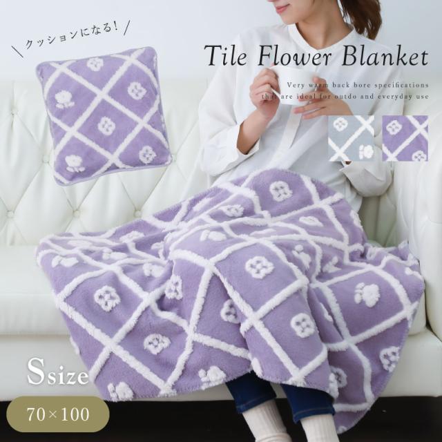 【宅急便送料無料】収納カバー付き! カットボア タイルフラワーブランケット【Sサイズ】約70cmx100cm ひざ掛け クッション かわいい おしゃれ シンプル おしゃれ
