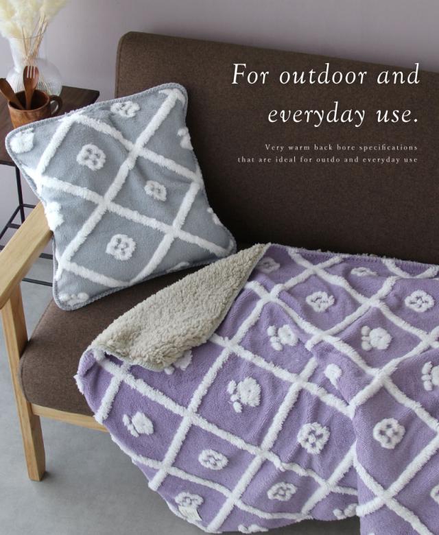 モダンな花柄がデザインされたブランケット。 高級感のある立体的なカットボアに上品な花柄デザイン。アクセントは残しつつ、どんなお部屋にも馴染みやすいナチュラルなカラー展開を取り揃えました。 Sサイズのみ専用の収納カバーが付いており、汚さずコンパクトに収納できて、クッションとしても使えるのもうれしいポイントです。