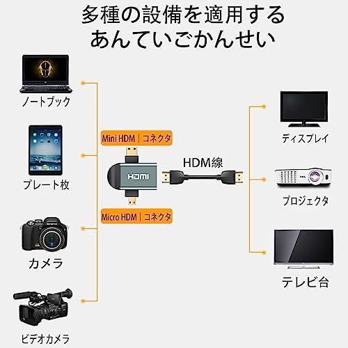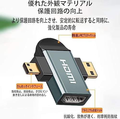 mini hdmi 変換アダプター HDMI 変換アダプタ Mini Micro 2 in 1 超小型 1440P アルミニウム合金 ハウジングhdmi 2 in 1 micro オス 変換
