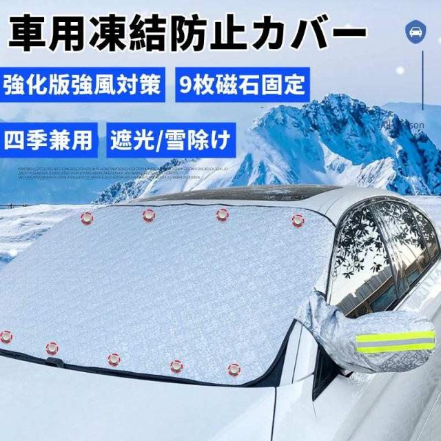 【2023改良型&強化版強風対策】車用凍結防止カバー プラド専用 雪対策 防水 フロントガラス 車サンシェード 凍結防止シート 9枚磁石 カーフロントカバー 日よけ 遮光断熱 四季兼用 厚手 内蔵後視鏡カバー 盗難防止 挟み耳付き 取付簡単 折り畳み式 積雪 雹 落葉対策
