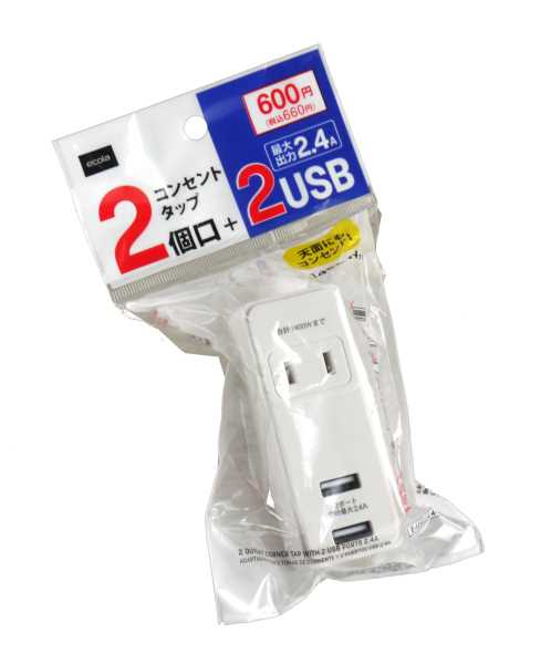 ●品名・コンセントタップ2個口 USB2ポート2.4A