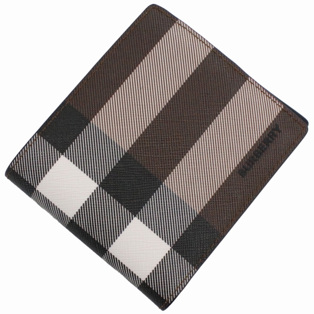 バーバリー 二折財布小銭入付き メンズ ブランド 財布 熱可塑性ポリウレタン コットン 8052802 BURBERRY DARK BIRCH BROWN ブラウン系 マルチカラー