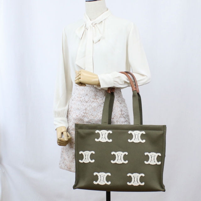 セリーヌ トートバッグ レディース バッグ キャンバス カーフ 19676 CELINE KHAKI カーキ