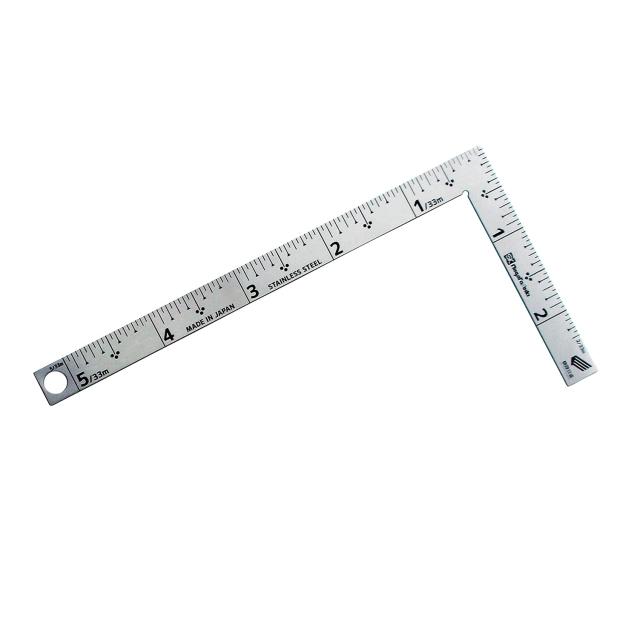 原産国:日本<br>角部:同厚<br>長手(妻手)x巾x厚さ(mm):162(83)x12x1.2<br>表目盛:長手・外5寸、妻手・外2寸3分<br>裏目盛:長手・外5寸内ホゾ2寸、妻手・外2寸3分<br>◆商品名:新潟精機 SK 日本製 カーペンターミニ 快段目盛 5寸 CM-5SKD<br>寸法測定、直角確認に。