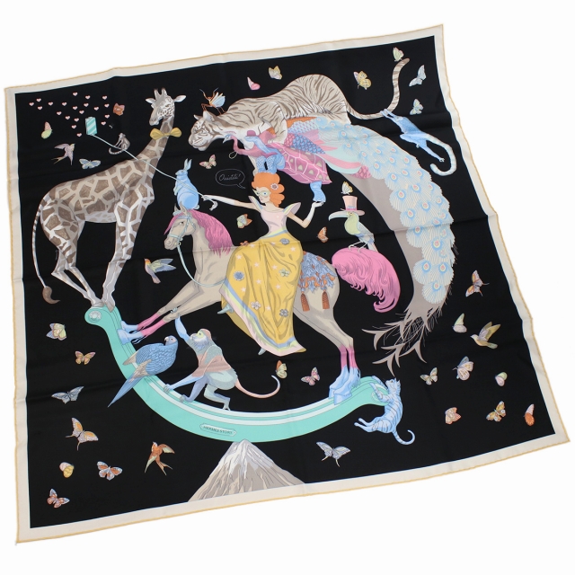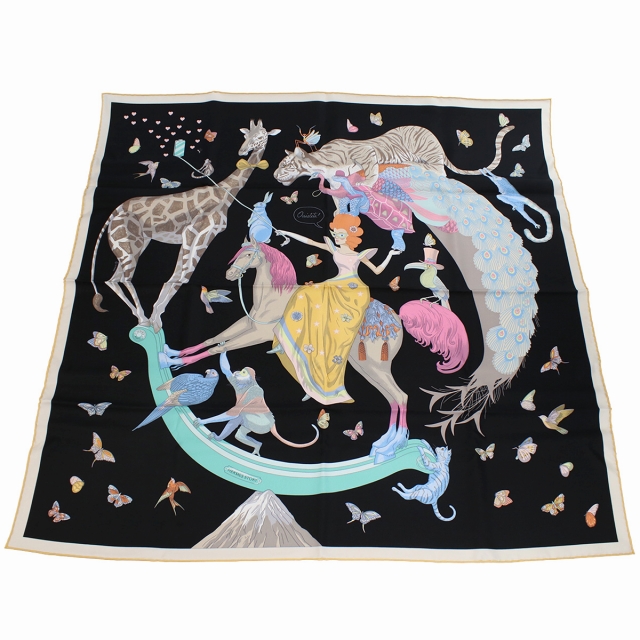 エルメス スカーフ レディース HERMES シルク100% フランス CARRE TWILL ブラック マルチカラー 小物