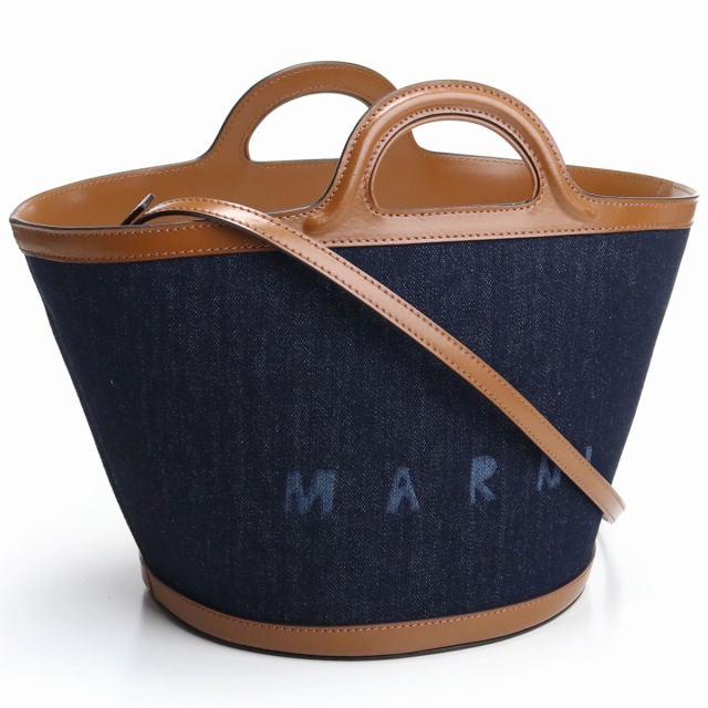 マルニ トートバッグ レディース MARNI コットン カーフレザー イタリア BMMP0097L1 ネイビー系 バッグ