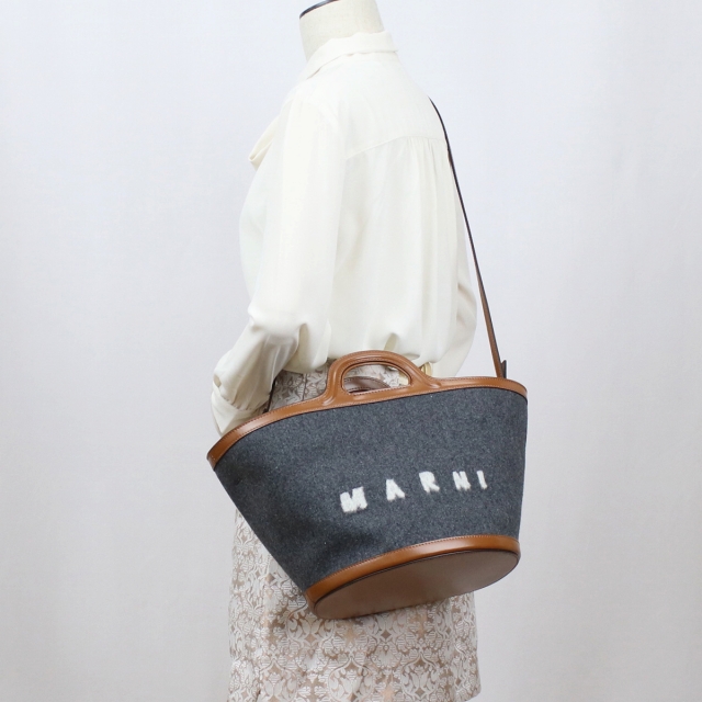 マルニ トートバッグ レディース MARNI ウール ナイロン カーフレザー イタリア BMMP0097Q1 グレー系 バッグ