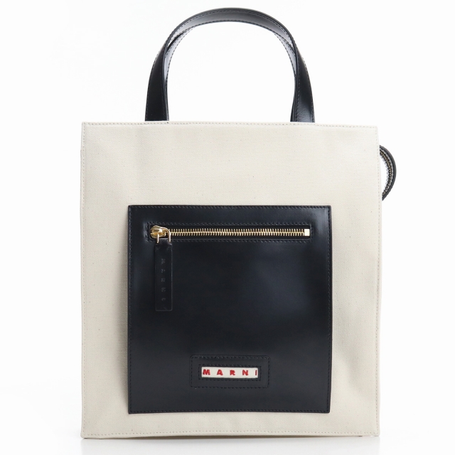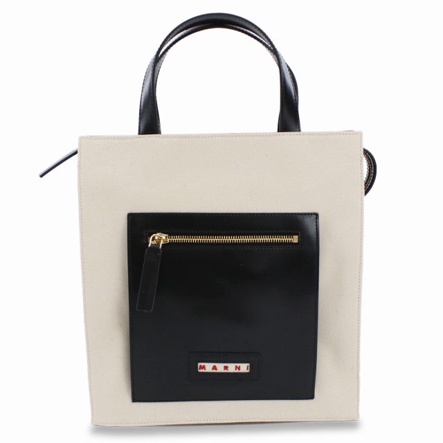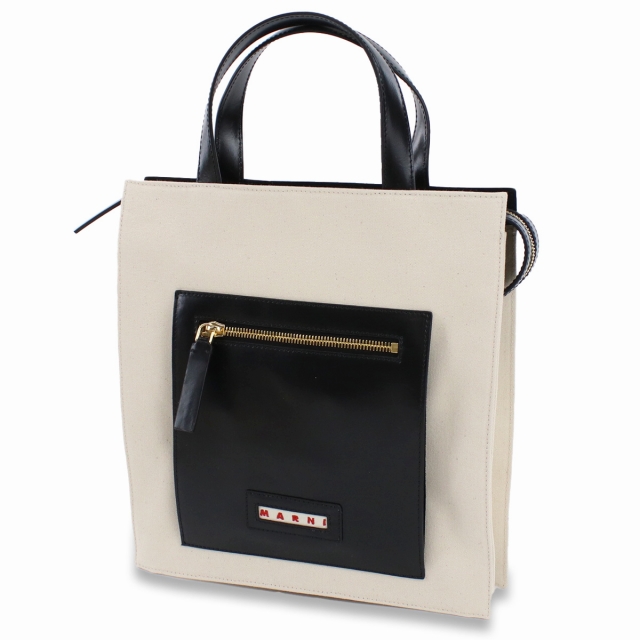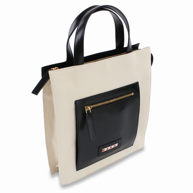 マルニ トートバッグ レディース MARNI コットン レザー イタリア SHMP0068Q0 ホワイト系 ブラック バッグ