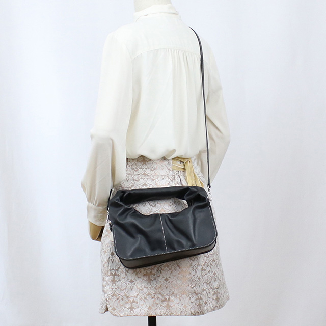 | サイズ | (縦×横×マチ):約24×11×11cm ハンドル長さ:約21cm ハンドル高さ:約8cm ショルダー長さ:約120cm 開口部:約18cm 重量:約260g 長財布はスムーズに入りませんが収納は可能です。W11×H9.5×D3の2つ折り財布はスムーズに入ります。 |