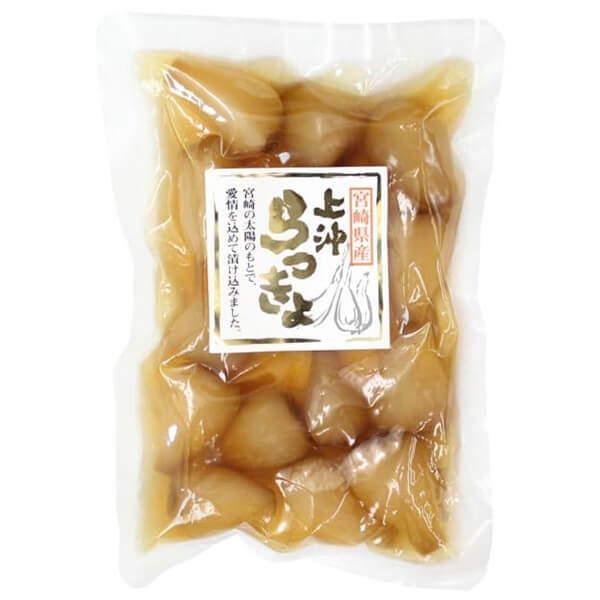 上沖産業 宮崎県産甘らっきょうは宮崎県産らっきょうをじっくり乳酸醗酵させ、大粒でカリカリ食感に仕上げ甘酢であっさりと漬けました。