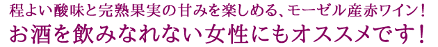 モーゼル地方からやさしい甘口赤ワイン!皮質重視のブドウ栽培家による、モーゼル・ザール・ルヴァーの生産者組合モーゼルランド。現在ではモーゼル、ナーエ、ラインヘッセン、プファルツ地方のブドウ栽培農家も加盟するドイツ最大の生産者協同組合。母体は大きくなりましたが、品質重視のスタイルは変わらず、それぞれの地域で圧搾所をいくとも設け、丹精込めたワイン造りを行う生産者として信頼を集めています。初めて赤ワインを飲まれる方や、女性の方にも超おすすめのやや甘口赤ワイン!ドルンフェルダー種で作られた程よい酸味と、フレッシュでチャーミングなキイチゴのアロマ、完熟果実の甘みたっぷりな人気ワイン!当たりも柔らかく、女性に特におすすめです。