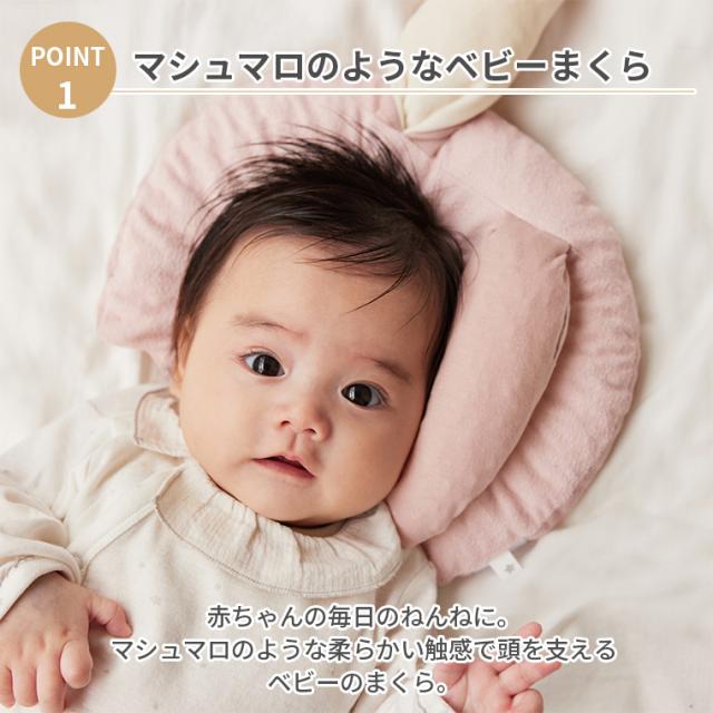 【特徴】動物の耳を赤ちゃんの頭の下に挿入することにより一方向を向きがちな赤ちゃんの頭を固定する向き癖防止のサポートをします。(向き癖が直るものではありません。)