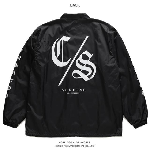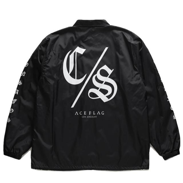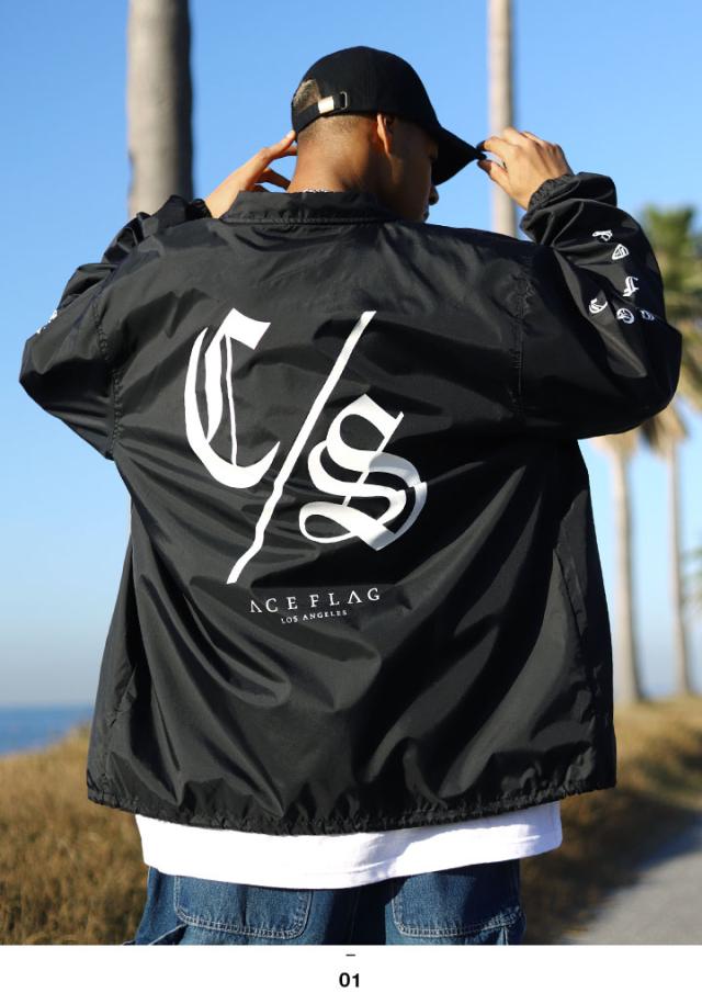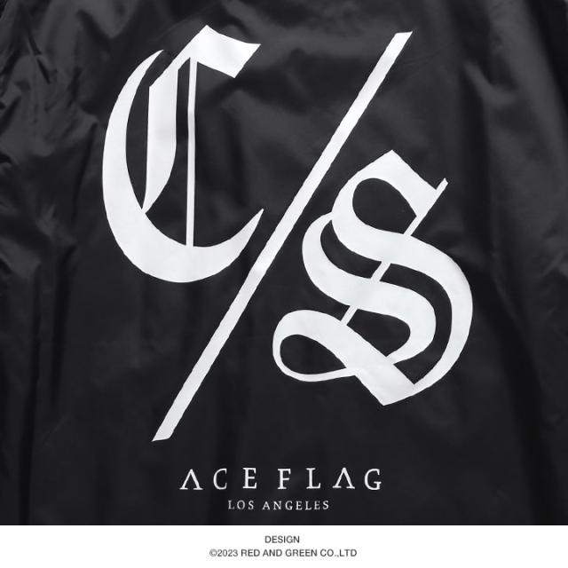 【50%OFF】ACE FLAG アウター 長袖 コーチジャケット ナイロンジャケット ブルゾン メンズ 黒 大きいサイズ エースフラッグ ジャケット ライトアウター CSロゴ 袖ロゴ モノグラム メッセージ b系 ヒップホップ ストリート系 ハイ 服 AF-TL-OU-010