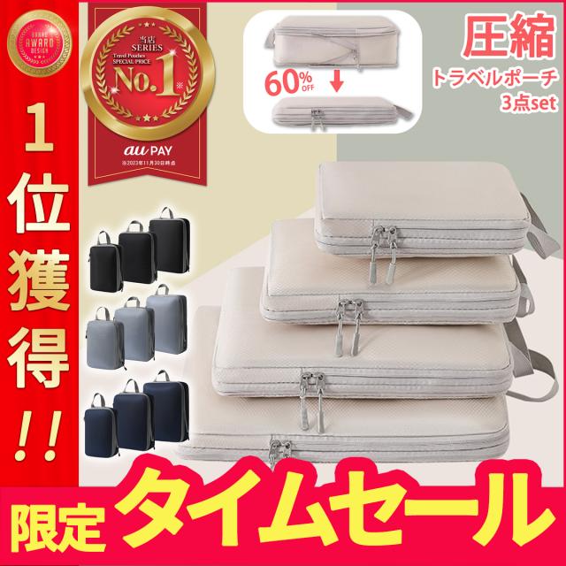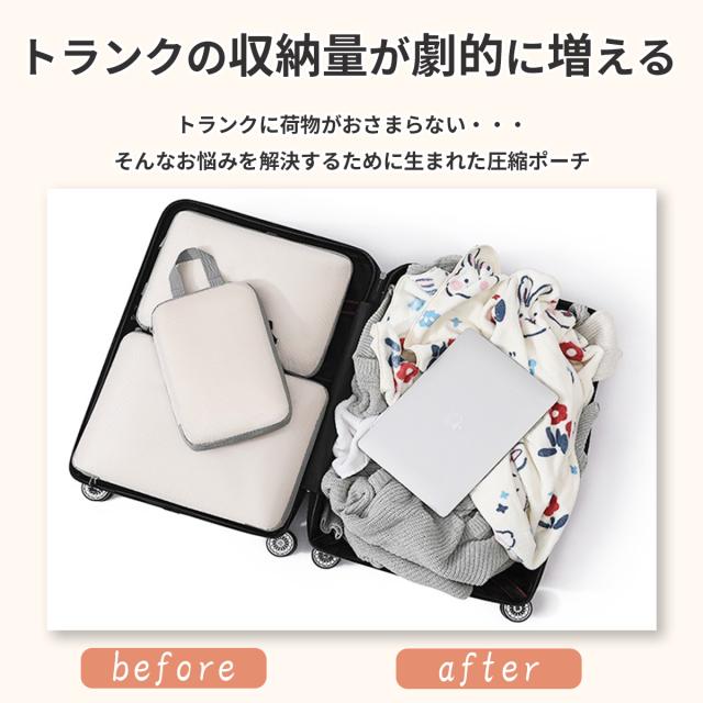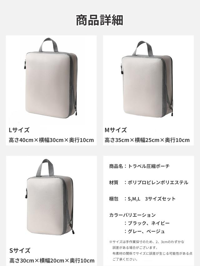 トラベルポーチ 圧縮 バッグ 圧縮バッグ 収納ポーチ 圧縮ポーチ 圧縮袋 軽量 出張 旅行 便利グッズ 簡単圧縮 衣類仕分け ファスナー コンパクト 衣類 撥水加工 60% 節約 メンズ レディース 3点セット
