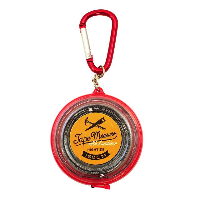 【サイズ】幅52×高さ58×奥行17mm<br>【素材】ABS<br>【重量】32g<br>150cm目盛り/カラビナチェーン付き<br>◆商品名:ハイタイド テープメジャー 1.5m レッド GZ097<br>カラビナパーツ付きで持ち歩きに便利なテープメジャー。 両面150cm表記ではっきり見やすい黒のテープにシルバーの印字。 巻き取りもワンプッシュで簡単です。