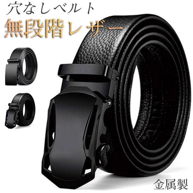 ベルト メンズ 穴なし 無段階 レザー オートロック PU ビジネス カジュアル スーツ ゴルフ 自動 父 夫 学生 社会人 通勤
