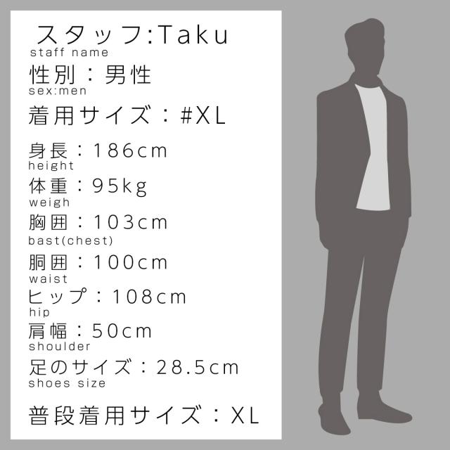| 表記サイズ(約cm) | 肩幅 | 身幅 | 着丈 | 袖丈 |