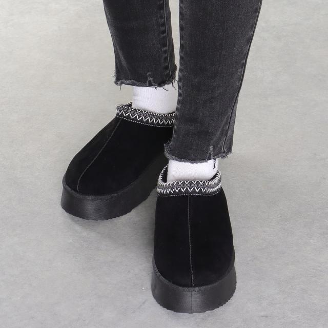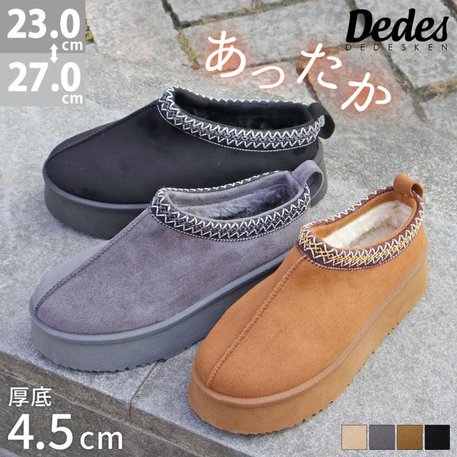 ムートンブーツ スリッポン 厚底 4.5cmヒール 刺繍 防寒 暖かい スエード ボア ファー ユニセックス No.6361 23cm-27cm Dedes