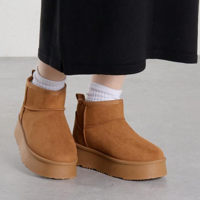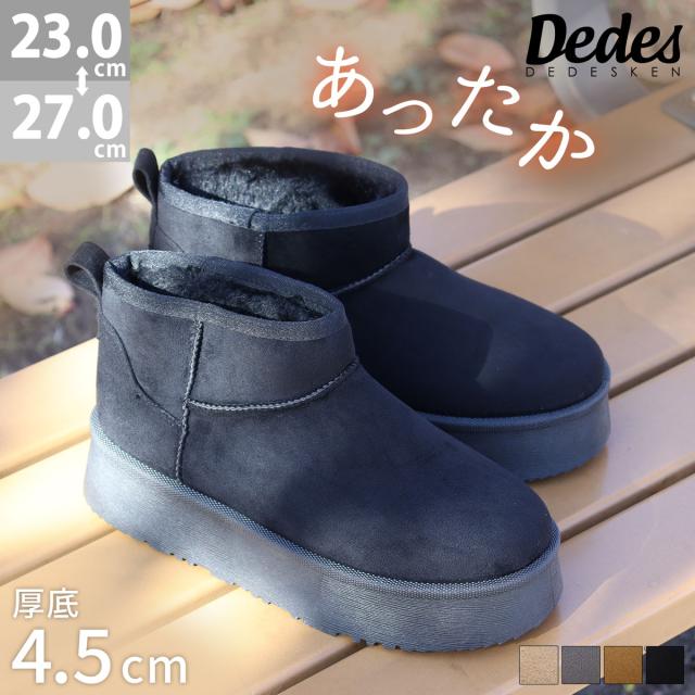 ムートンブーツ ショートブーツ 厚底 4.5cmヒール 防寒 暖かい スエード ボア ファー ユニセックス No.6362 23cm-27cm Dedes