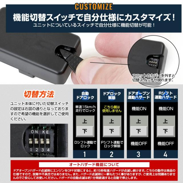 - 新車買い替えに伴いこの商品を知り購入しました。 今まで乗っていた車には車速ドアロックが搭載されていたので、同等機能がこの価格で装備できるのは助かります。
