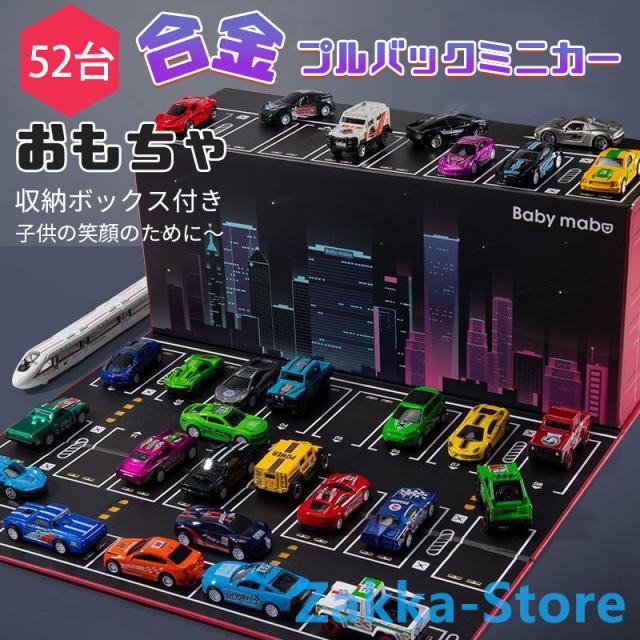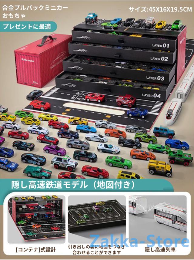 ミニカー おもちゃ 52台セット リアルモデルミニカー コンテナ収納ボックス付き プルバック式 マップ 簡単収納 指先トレーニング 誕生日 プレゼント コレクション キッズ 入園