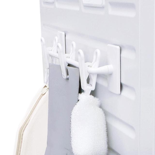 ●磁石が付く洗濯機や浴室などに貼り付けて周辺の小物を吊り下げられます。