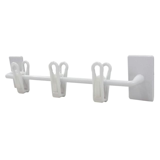 マグネットタイプなので、磁石が付く洗濯機や浴室などに貼り付けて周辺の小物を吊り下げられます。3連のピンチタイプなので、ループやフックで吊るせないアイテムも挟んで吊るすことができます。