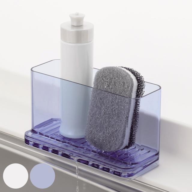 圧迫感がなくシンプルなフォルムで仕上げられた、洗剤や、スポンジが入る小物ラックです。別売りの水切りバスケットセットと一緒に使用する事で、シンク周りに統一感のあるキッチン収納が叶います。透明感のあるクリアとブルーの2色展開です。