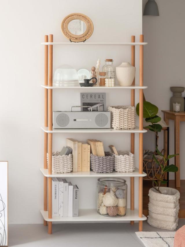 ホワイト×ナチュラルカラーが優しい印象のオープンラック 5段