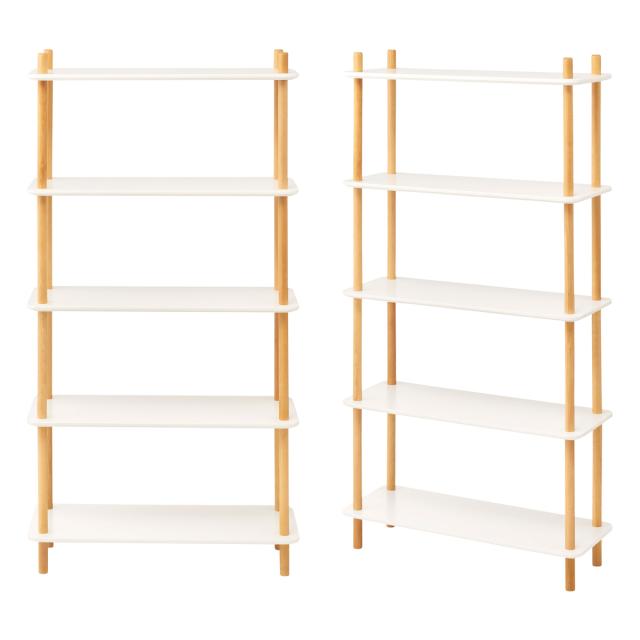 ホワイトカラーの棚と天然木の支柱との組み合わせは、ナチュラルなテイストでお部屋に優しい印象を与えてくれます。壁面に設置するだけでなく空間の間仕切りとしても、抜け感を与えながら圧迫感無く使用できます。ワンルームにお住まいの方や、一人暮らしの方にもおすすめです。