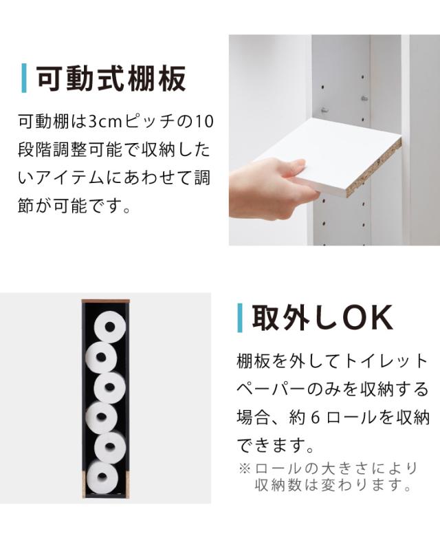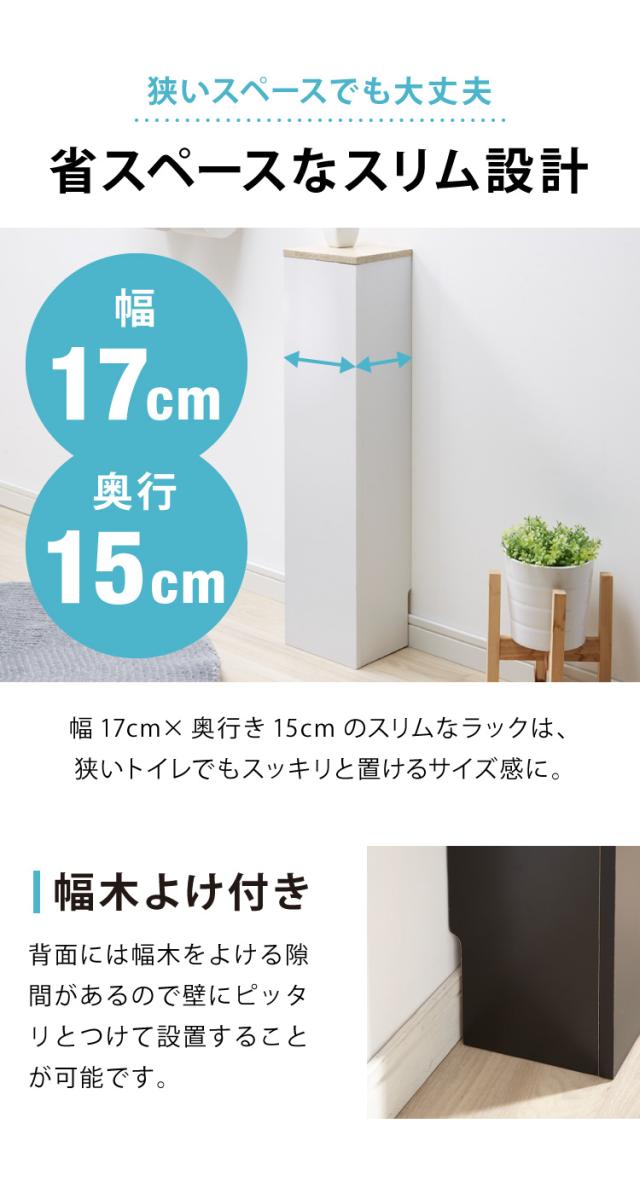・縦長にスリム設計なので、狭いトイレでもすっきり収納できます。