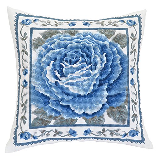 ◆商品名:オリムパス製絲 クロスステッチ 刺しゅうキット 美しい花たち ブルーローズ ベージュ 6056<br>大胆なバラの花のモチーフをクロス・ステッチで表現したクッションキットです。<br>・セット内容:25番刺繍糸、刺繍布(オリムパスNo.3000布ジャバクロス中目)、刺繍針、図案付説明書